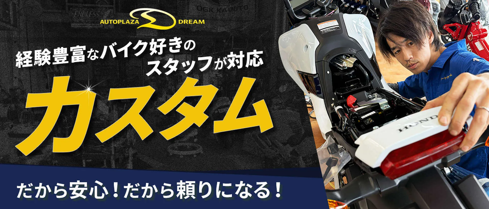 静岡県浜松市でバイクカスタムのことなら、浜松市で3代にわたり続くバイクショップ『オートプラザドリーム』にお任せください。
