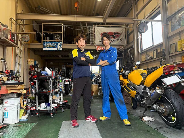 鈴鹿8時間耐久レースのピットクルーを経験したスタッフが在籍し、サーキットで培ってきた知識や感覚を、普段のバイクカスタムや整備にも自然に活かしています。